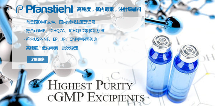 “熱烈祝賀Pfanstiehl的注射級甘氨酸Glycine(G-140)喜獲CDE登記號F20250000403, 這是Pfanstiehl產品獲得的第18個CDE登記號!”甘氨酸在醫藥輔料制劑中應用廣泛,, 可作為緩沖劑,增溶劑,穩定劑等,具有諸多優勢。Pfanstiehl秉承一貫高品質理念,為滿足全球生物制藥行業對于高品質甘氨酸的需求,隆重推出的注射級甘氨酸Glycine (G-140), 具有超高純度,超低內毒素,超低金屬殘留的特點,單獨檢測29種金屬離子,并且新增DNA,RNA,DNA酶,RNA酶和脂肪酶,亞硝酸鹽等多項質量指標的檢測,符合多國藥典規定(USP, EP, BP, JPE, ChP),可用于生物治療性藥物和疫苗的生產。產品信息:· 產品名稱:Glycine, High Purity, Low Endotoxin, Low Metals, USP, EP, BP, JPE, ChP (G-140)· 中文名稱:甘氨酸· 分子式:C2H5NO2· 分子量:75.07 g / mol· CAS號:56-40-6· 產品貨號:G-140產品特點: · 超高純度,超低內毒素,超低微生物含量,超低金屬雜質殘留· 質量指標新增DNA,RNA,DNA酶,RNA酶,脂肪酶和亞硝酸鹽檢測· 符合多國藥典:USP, EP, BP, JPE, ChP· 符合ICH Q3D標準· 符合GMP標準· 已獲DMF和CDE登記號 產品應用:· 緩沖劑· 穩定劑· 增溶劑如果您對Pfanstiehl注射級別Glycine G-140感興趣,歡迎聯系Pfanstiehl 中國區代理商北京西美杰科技有限公司獲得如下詳細的產品概況說明文件和測試樣品。Pfanstiehl Inc.最新產品系列如下,歡迎聯系北京西美杰科技有限公司獲取100g裝免費樣品。北京西美杰科技有限公司為Pfanstiehl中國代理,為客戶提供完善的技術支持與售后服務。歡迎撥打西美杰客服電話400-050-4006或者登陸網站www_xmjsci_com.uuzy008.com了解更多信息。 更多>